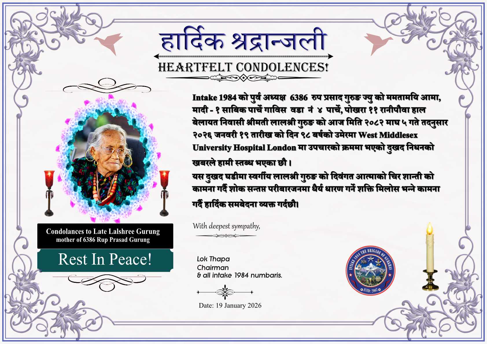 Condolences